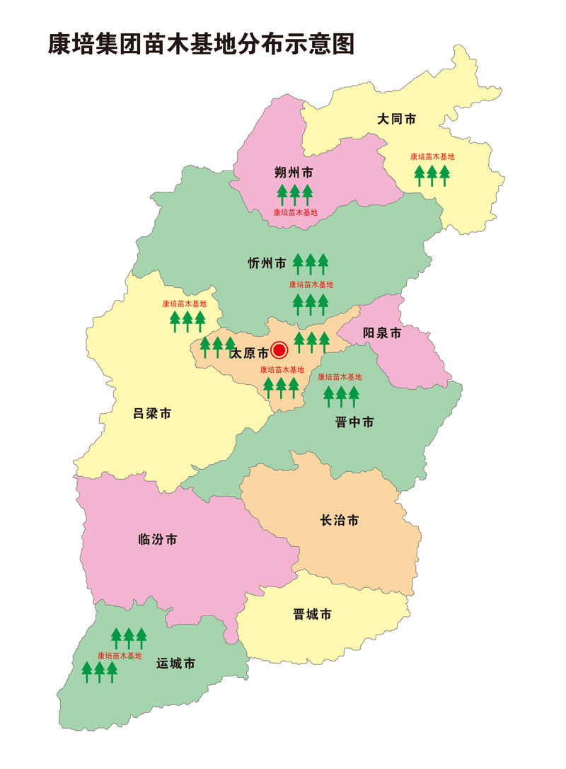 經(jīng)過(guò)20年的發(fā)展,康培集團(tuán)陸續(xù)在太原、晉中、運(yùn)城、忻州、大同、朔州、呂梁等7個(gè)地市建立了苗木種植、小苗自繁、苗木快繁、容器苗木、花卉培育等生產(chǎn)基地,培育和儲(chǔ)備了喬木、花灌木、地被等42科300多個(gè)品種的不同規(guī)格的苗木。